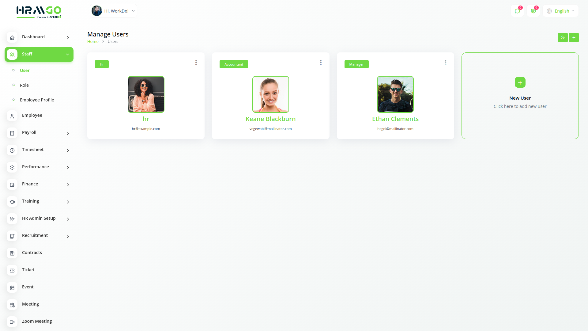 Employee Management: Effortlessly onboard, track, and manage employee data in a secure, centralized system.